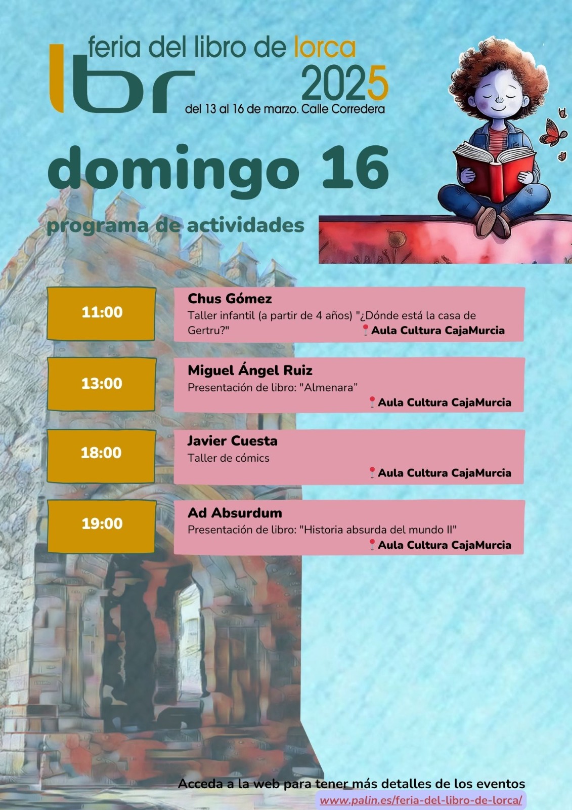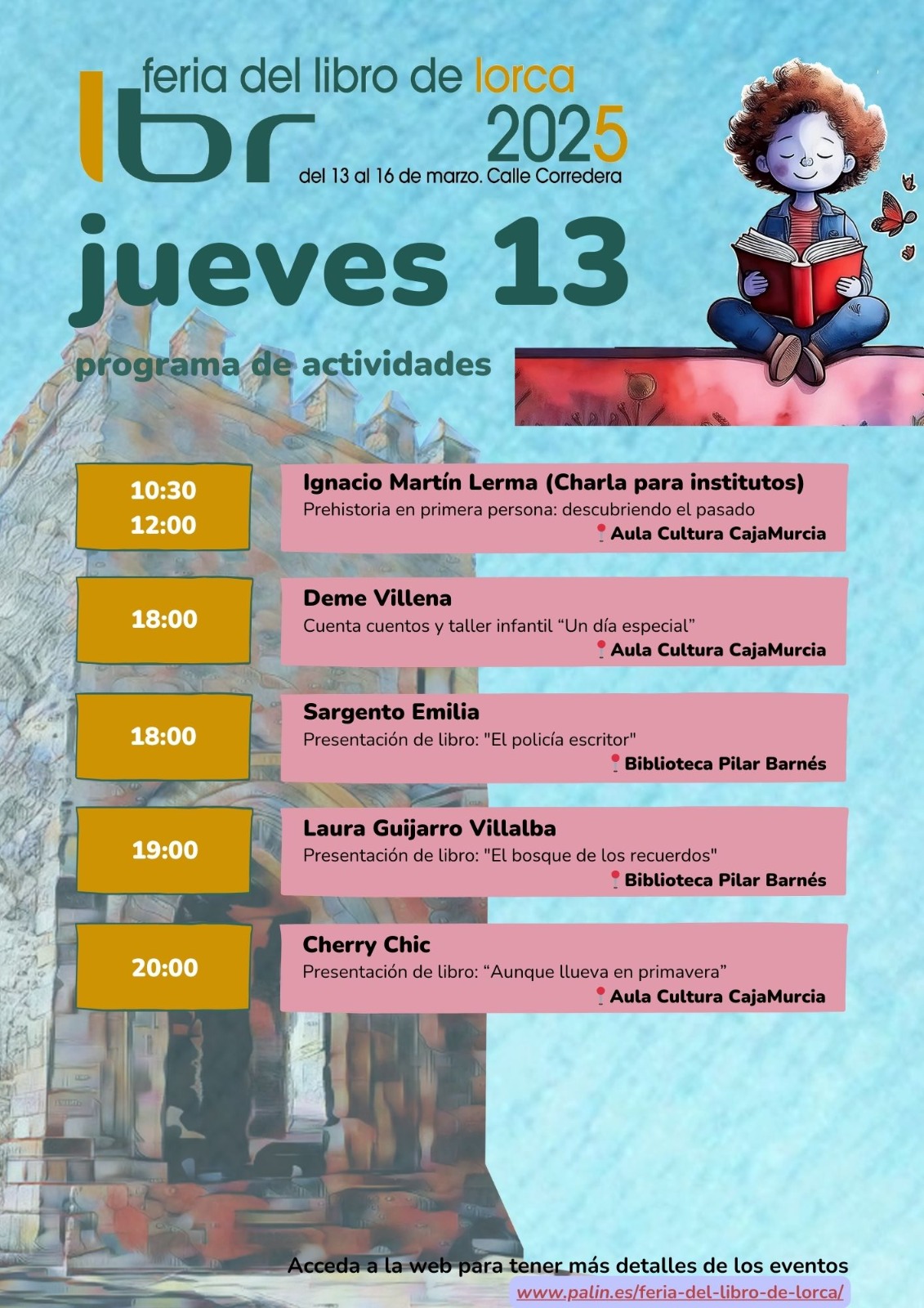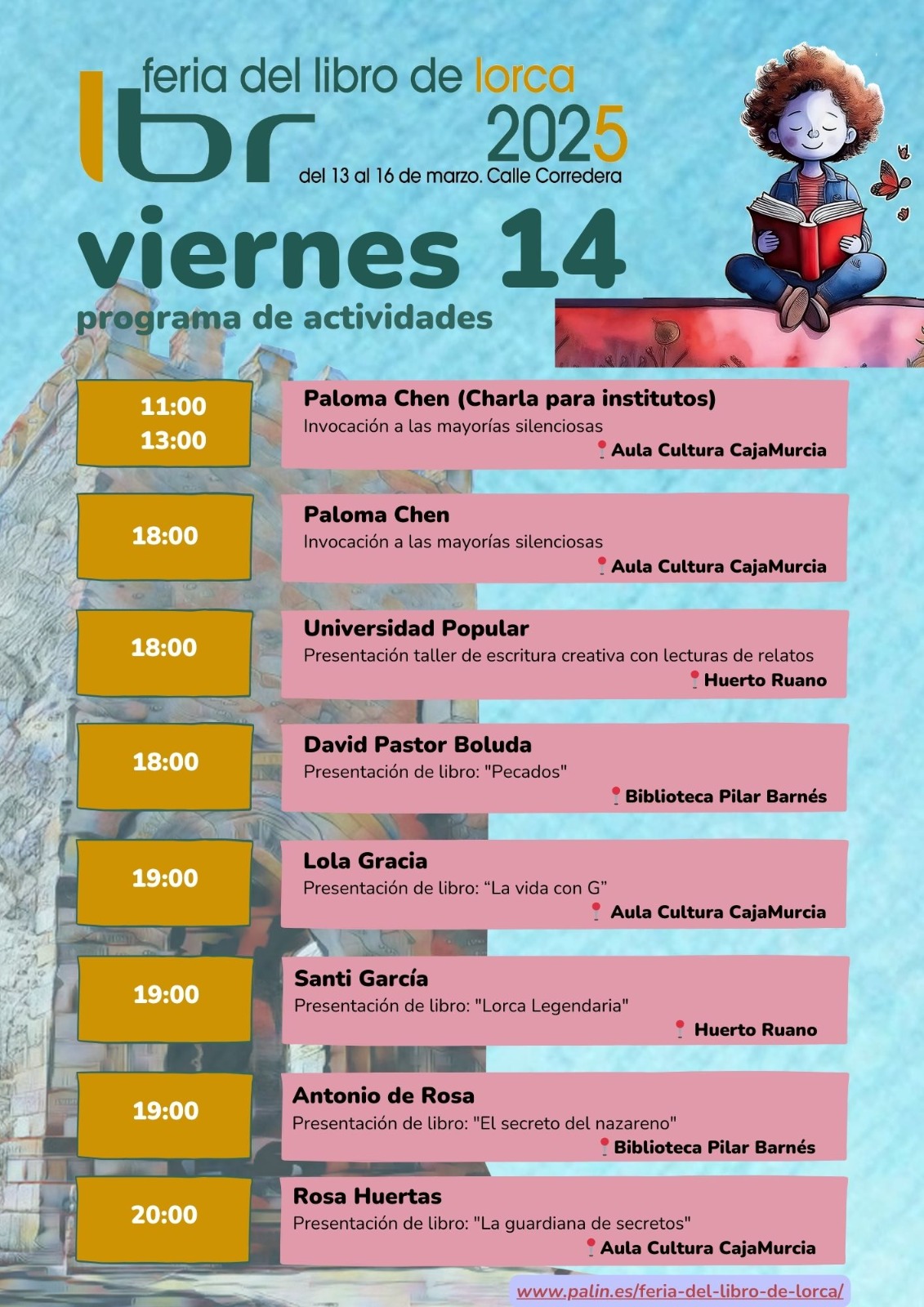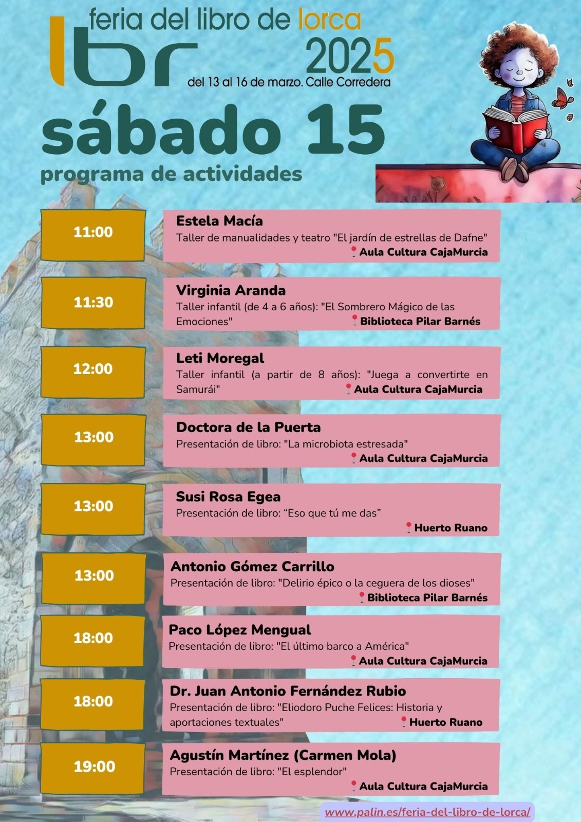 Consulta toda la programación diaria de la Feria del Libro de Lorca y no te pierdas ningún evento.